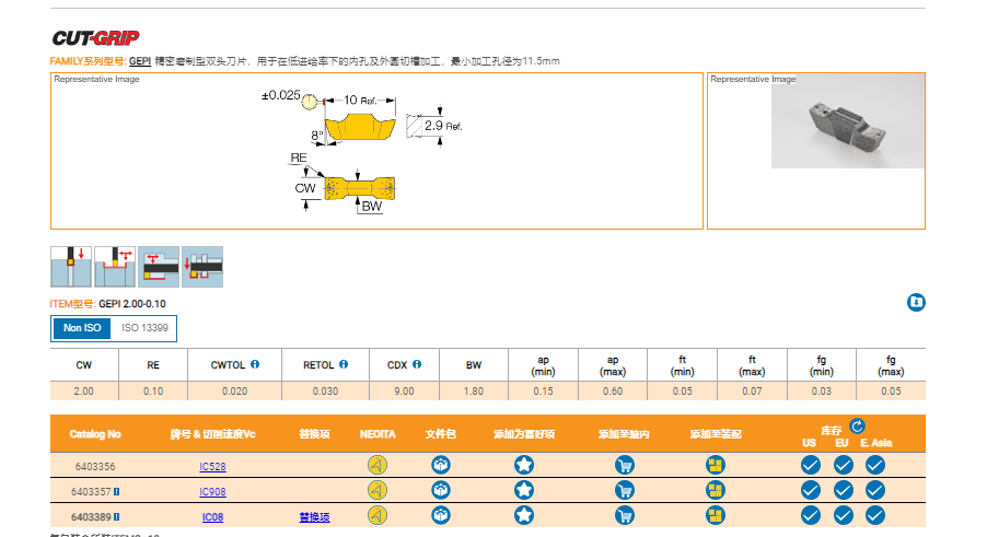IC08   韌的無涂層亞微米級硬質合金牌號,適用于低切削速度下的鋼、不銹鋼和高溫合金。有色金屬材料的良好選擇。