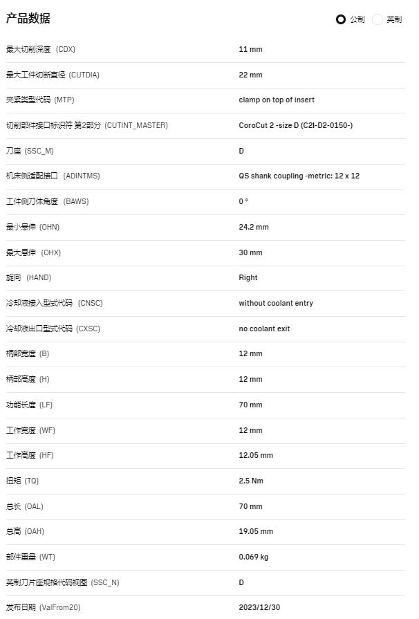 山特切槽切斷刀柄C2R-QS12-RD11DS外圓刀具