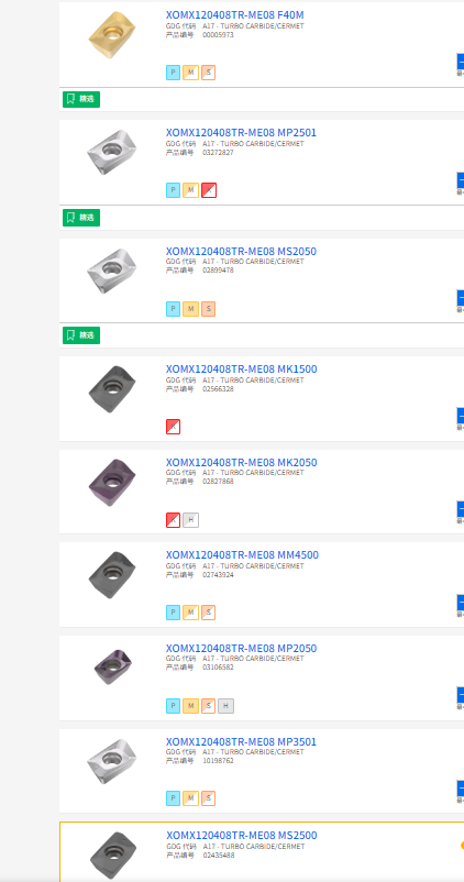 山高刀片 銑刀片 涂層刀片XOMX120408TR-ME08 MS2050瑞典seco刀粒