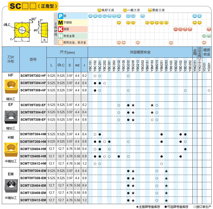 SCMT09T308-HF YBC152/YBC251/YBG202/YBD152/YD201